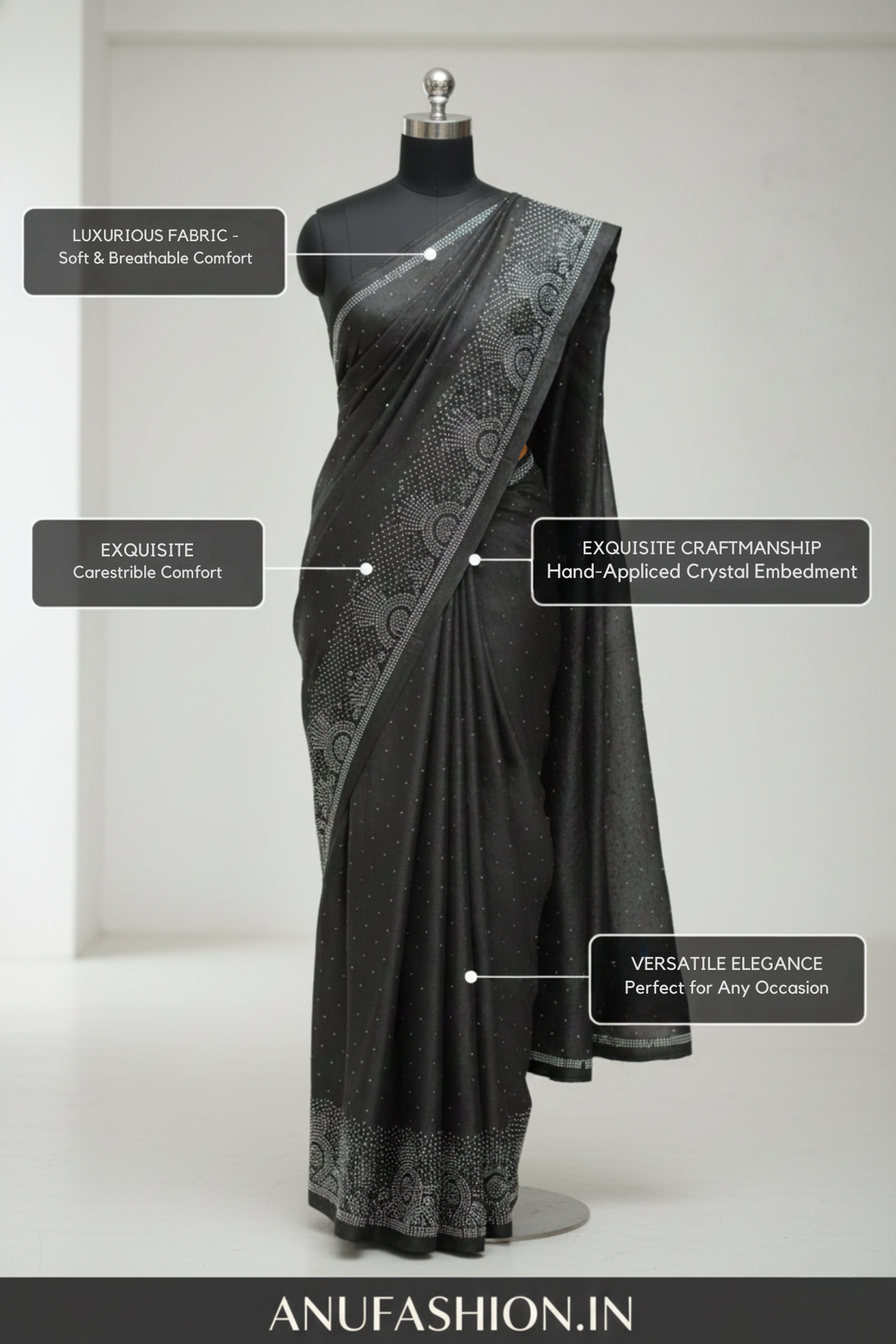 New Georgette Saree with Luxury Diamond Work and Diamond Border